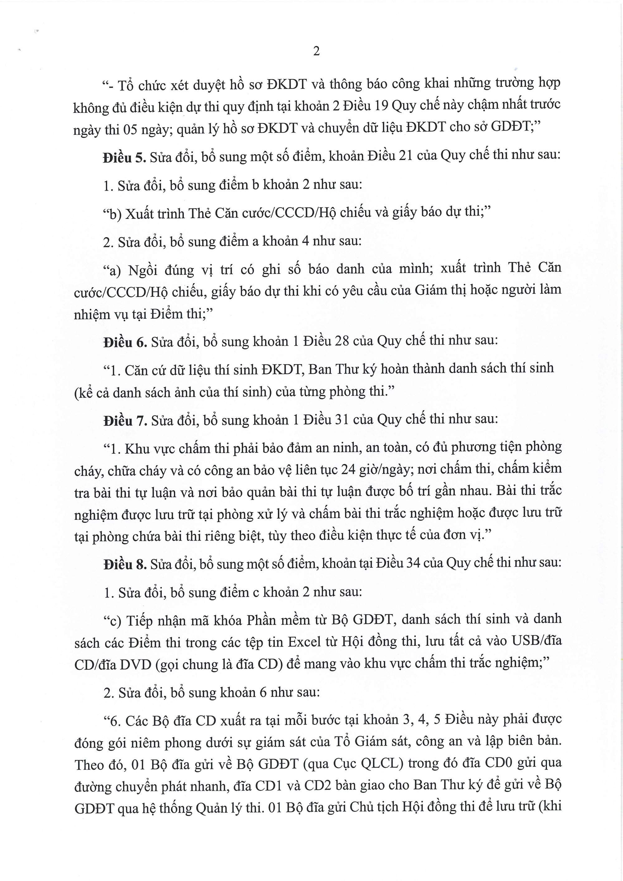 Thông tư mới cũng rà soát, điều chỉnh một số nội dung trong quy chế nhằm thống nhất với các quy định pháp luật hiện hành và đáp ứng yêu cầu đổi mới quản lý giáo dục. Các nội dung sửa đổi chủ yếu tập trung vào quy trình tổ chức kỳ thi, công tác coi thi, chấm thi, công bố kết quả và xử lý vi phạm. Những điều chỉnh này được xây dựng trên cơ sở thực tiễn tổ chức các kỳ thi trong thời gian qua, qua đó khắc phục những bất cập phát sinh và nâng cao hiệu quả quản lý.