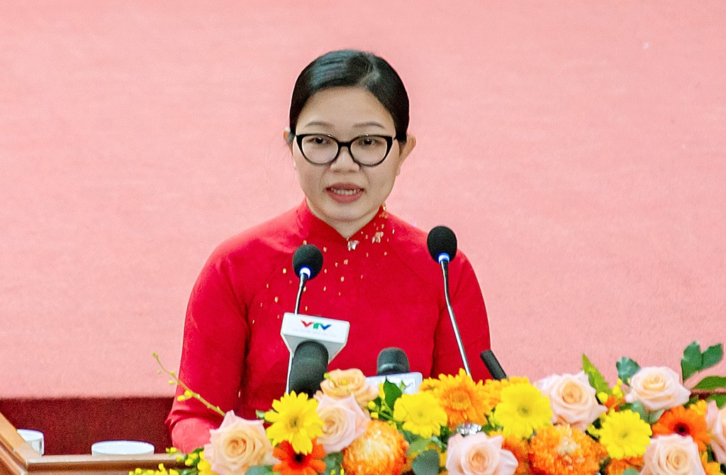 Đồng chí Trần Thị Vĩnh Nghi, Bí thư Đảng ủy phường Ninh Kiều, đại diện 103 bí thư đảng ủy xã, phường phát biểu tại buổi lễ khẳng định quyết tâm phấn đấu, công hiến, hoàn thành xuất sắc nhiệm vụ được giao, góp phần xây dựng quê hương phát triển, thực hiện tốt kỳ vọng của Đảng bộ, chính quyền và Nhân dân thành phố.